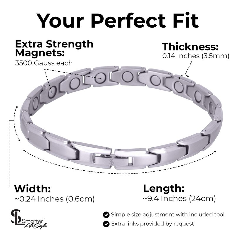 Smarter LifeStyle Elegant Titanium Magnetic Anklet for Women - Adjustable Bracelet Length with Sizing Tool for Perfect Fit, Womens Magnetic Anklet (Silver)