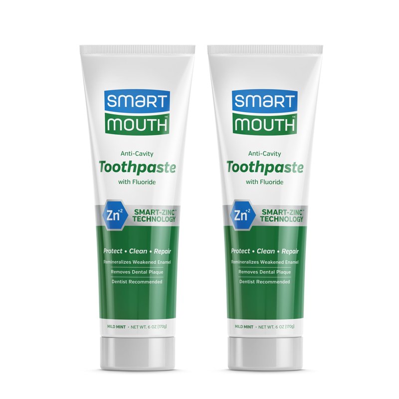 SmartMouth Premium Zinc Ion Toothpaste - Whitening Toothpaste with Fluoride - Refreshing, Anti-Cavity Toothpaste for Adults - Strengthens Enamel - Mild Mint Flavor, 6 oz (2 Pack)