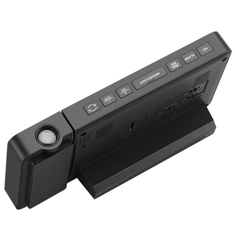 - ⏰DUAL ALARMS WITH SNOOZE FUNCTION: Set 2 separate alarms repeating in M-F, S-S, or M-F and S-S for different purposes. The alarm will automatically turn off if left alone for 2 minutes. With snooze function, this projection alarm clock allows you to set 5 ~ 60 minutes’ sleep time or turn SNOOZE function off - A step towards the practical use.