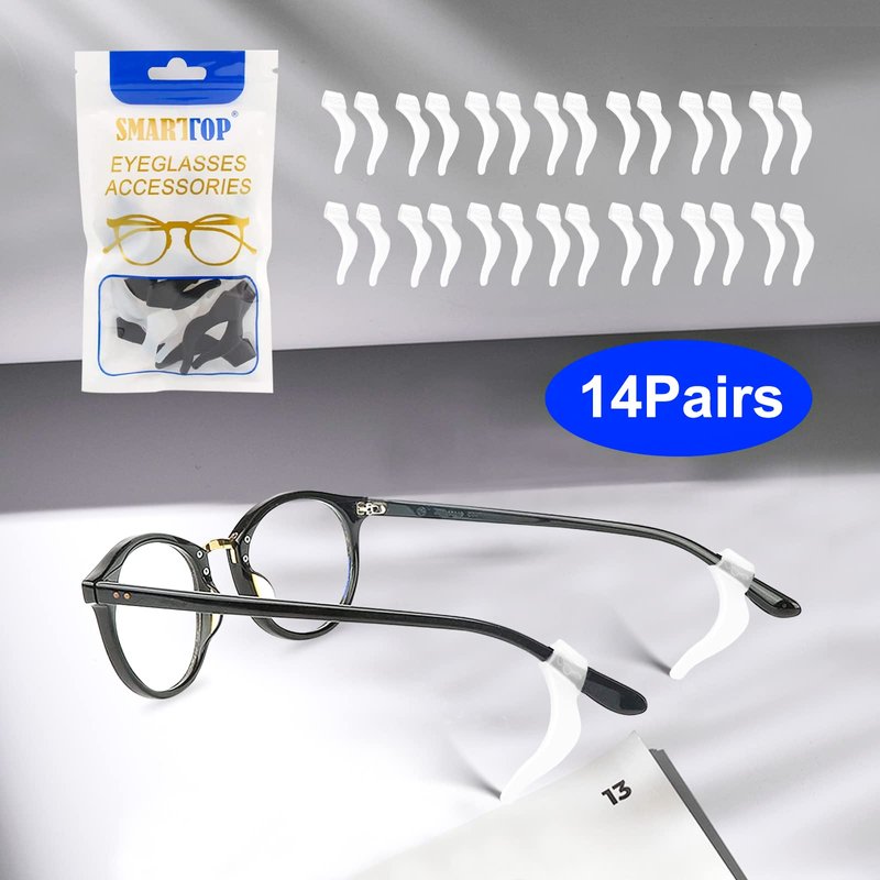 Welcome To SMARTTOP! Environmentally friendly Soft Silicone Glasses Ear Hooks Great Value Pack Features: 1. Comfortable, Keep Your Glasses work well. 3.Non-Slip, Lightweight, Not easily deformed. 4.More fit to the outline of the ear, Smart and Stylish. 5.Soft, Super Stretch and Durable. 6.Extend the life of the glasses 7.Fits Most Eyeglasses, Reading Glasses or Sunglasses. Specification: Material: 100% soft silicone Size: 4.2*1.1*0.25 cm Weight: 1g/each one Color: Clear Applicable people: Unisex for Adults and Child Package Contents: ** 12 pairs of silicone glasses retainers Gift: 1 *piece of Microfiber Glasses cloth 15*18cm PS: 1.If anyone has any issue getting them on thick eyeglass arms I would suggest a little coconut/olive oil possibly and wipe off the excess after, or just work them slowly and they fit all. 2.You can share with your friend If you love it; and please contact us in time if you have any question.