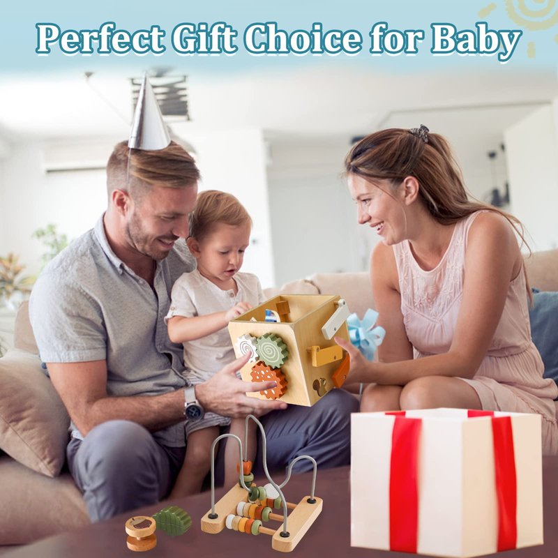 - 【6-in-1 Activity Busy Cube】To meet the different needs of toddler, the fully upgraded activity body contains scenario bead winding, rotating linkage gear, shape block matching, math abacus, animal flipboard, car ramp, each side is a different hands-on activity, with cute animal patterns, can quickly attract baby's attention and open their imagination, learning and playing non-stop.