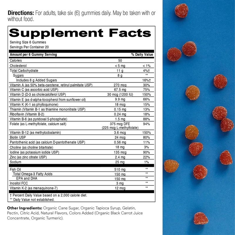 - WITH 15 NUTRIENTS TO SUPPORT BUSY LIFESTYLES*: Our science-backed formula includes vitamins B12 and D3, as well as methylated folate, biotin and omega-3 EPA and DHA in a delicious gummy serving