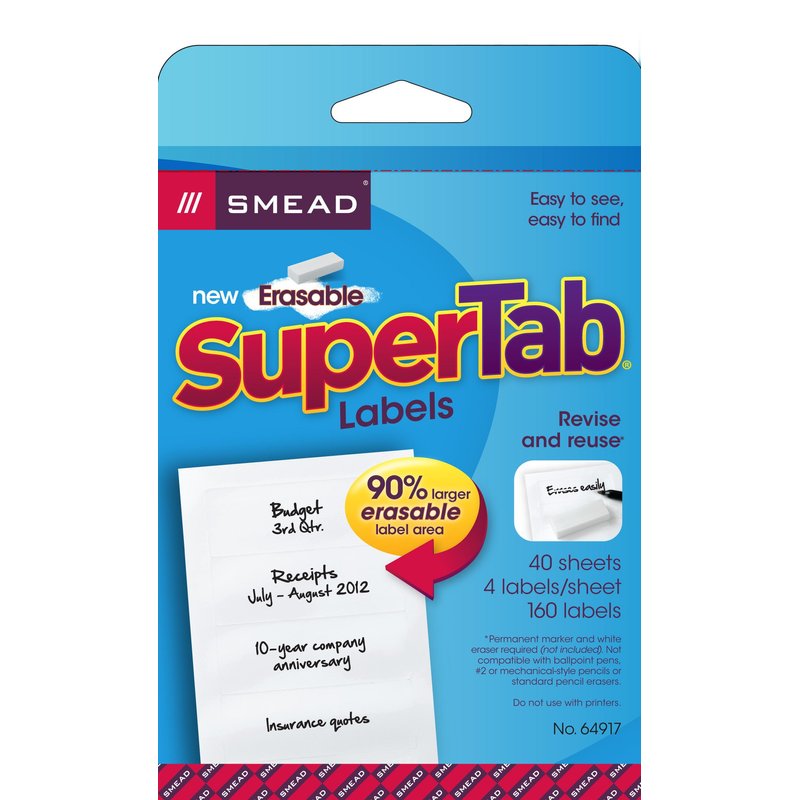 Smead Erasable SuperTab® File Folder Labels, White, 160 Labels per Pack (64917)
