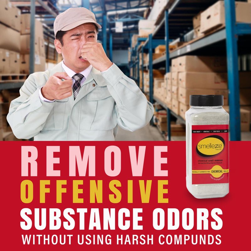 SMELLEZE Natural Chemical Odor Remover Granules can help. Instead of just covering up noxious chemical odors, our amazing stink removing granules absorb and encapsulate harmful smells without fragrances. Chemical odor doesn't stand a chance. Safe for people, pets & planet. This all-natural chemical odor remover really works.