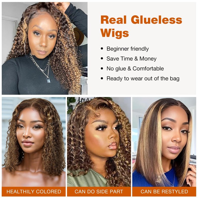 - Precut Lace and Pre-bleached Knots: The wear and go glueless highlight human hair wigs with pre-cut lace and pre-bleached knots, beginner friendly. 5x5 HD lace closure wigs, you can do the middle part, side part, C part, or free part