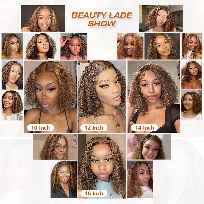 Smilegirl Glueless Bob Wigs Human Hair Pre Plucked Pre Cut Honey Blonde Curly Human Hair Wig for Black Women Highlight Ombre 5x5 HD Lace Closure Deep Wave Wigs 200 Density (12 Inch)