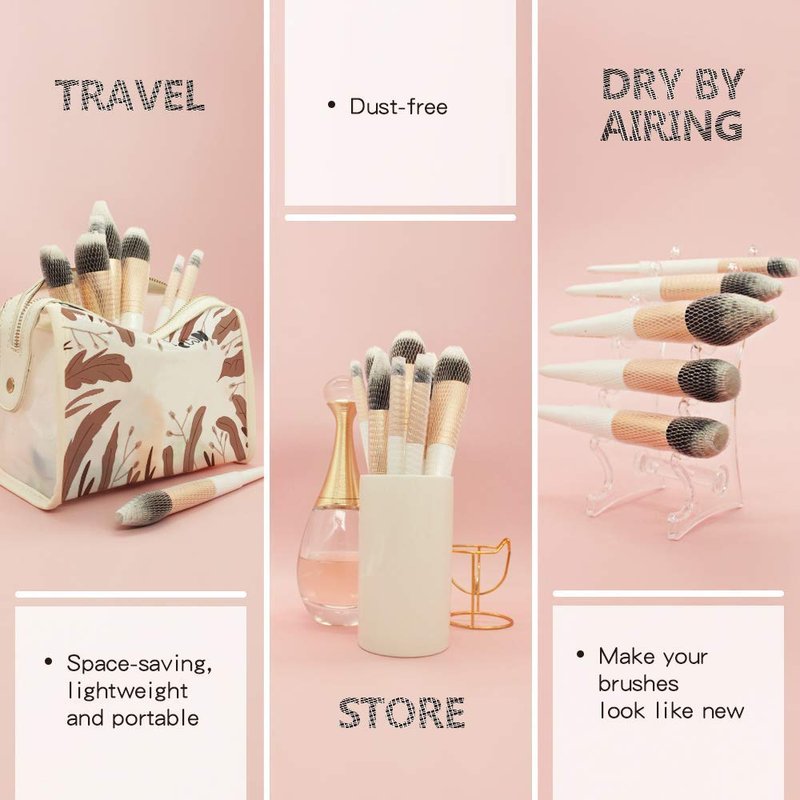 - Other Uses: These makeup brush nets are very useful, can be use to protect other brushes like paint brushes; Protect leather tassels on handbags while in storage; Put over thread spools to keep from unraveling; Use around bar soap to prevent slipping and so on.