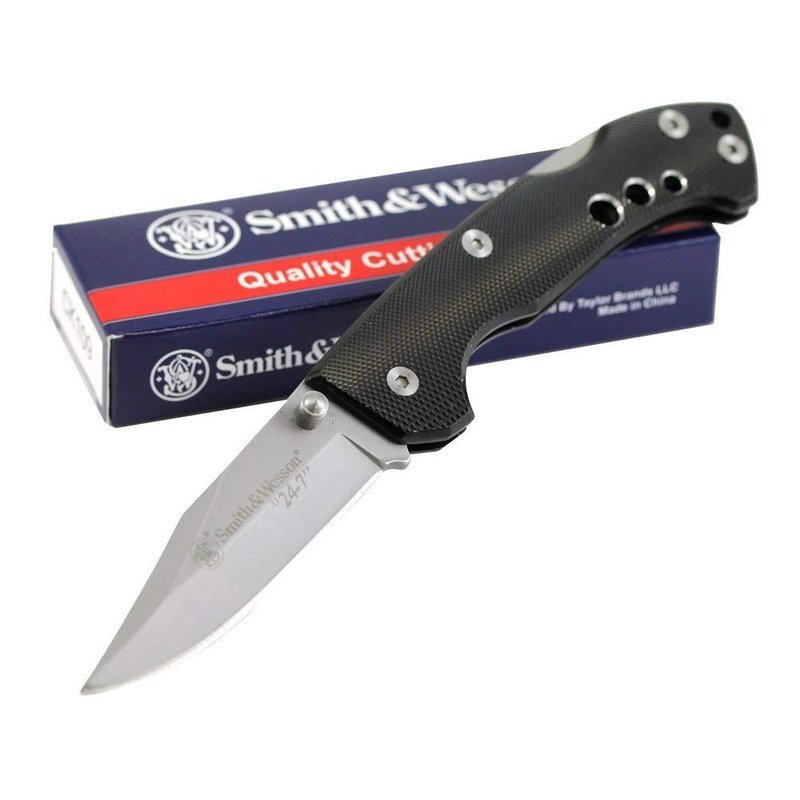 Smith & Wesson 24/7 CK109 7.4in High Carbon S.S. Folding Knife with 3in Clip Point Blade and Aluminum Handle for Outdoor, Tactical, Survival and EDC