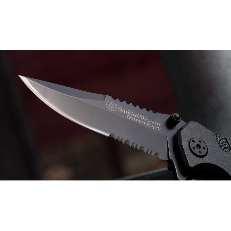 Smith & Wesson Accessories Extreme Ops SWA24S 7.1in S.S. Folding Knife with 3.1in Serrated Clip Point Blade and Aluminum Handle for Outdoor, Tactical, Survival and EDC