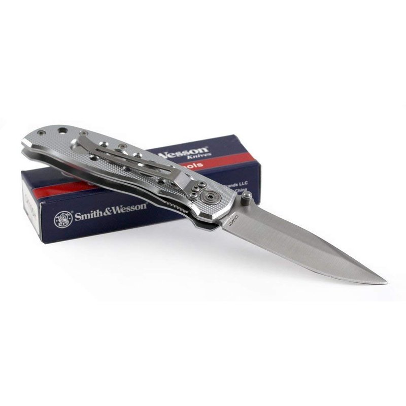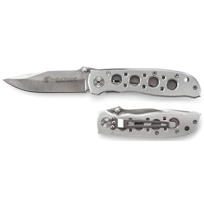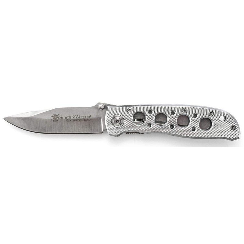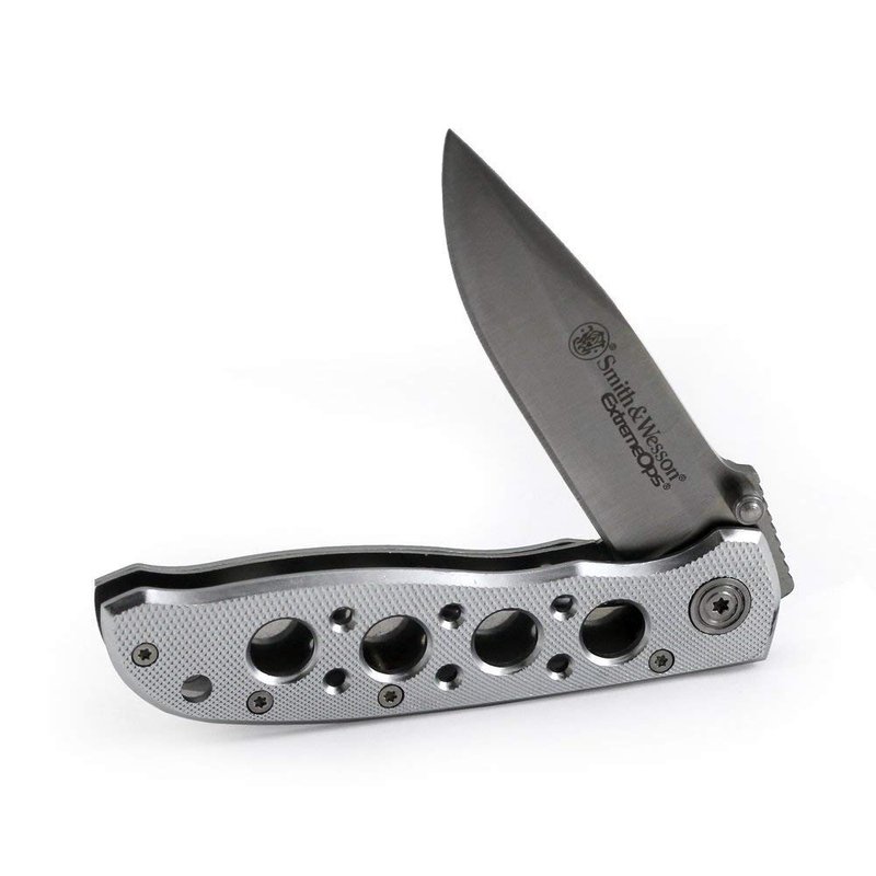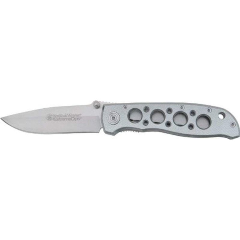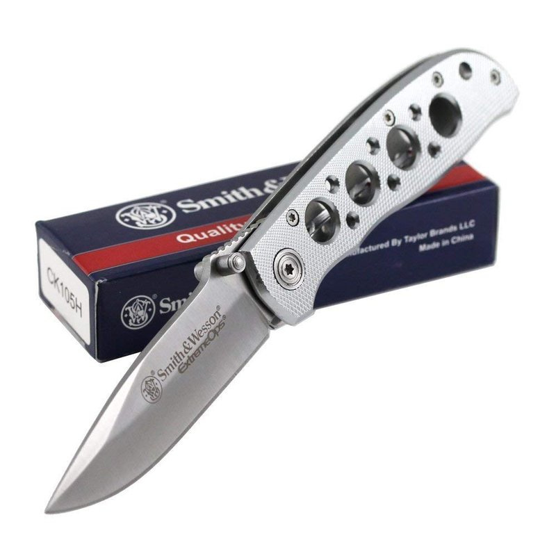 Smith & Wesson Extreme Ops CK105H 7.3in S.S. Folding Knife with 3.2in Drop Point Blade and Aluminum Handle for Outdoor, Tactical, Survival and EDC,Silver