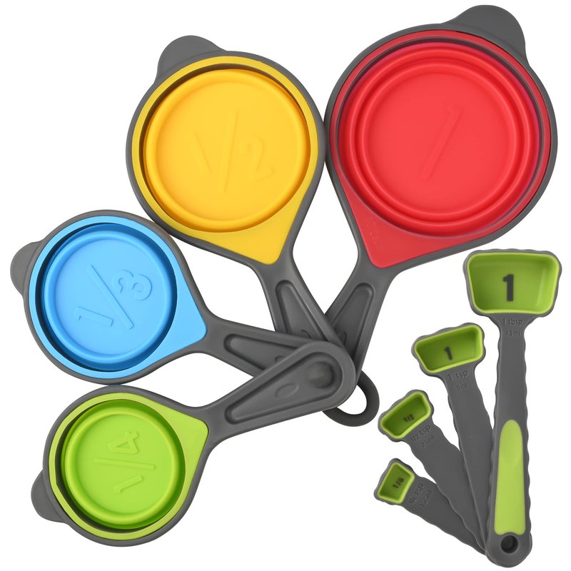 Smithcraft Measuring Cups and Spoons Set, Silicone Collapsible Measuring Cups, 8 Piece Kitchen Camping Measuring Cups Spoons, Travel Dry Measure Cups Spoons for Baking, Cooking Gadgets Green Pack 1