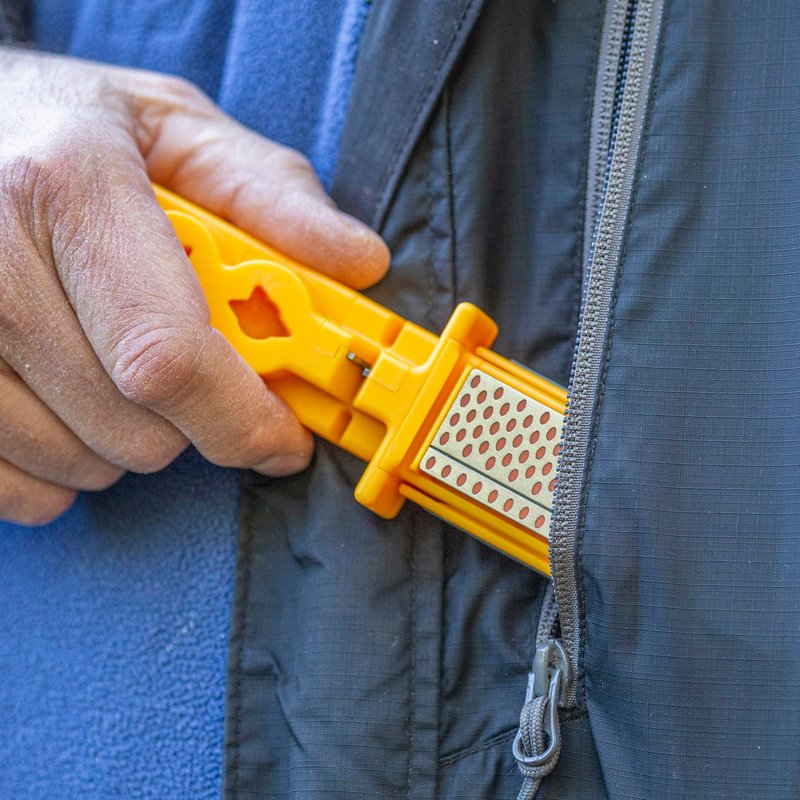 - DIAMOND STONE – The sharpening stone features a Fine 750-grit interrupted surface to provide a quick razor-sharp edge on any knife or tool. This 4” stone features a micro-tool sharpening pad and a sharpening groove perfect for fish hooks.