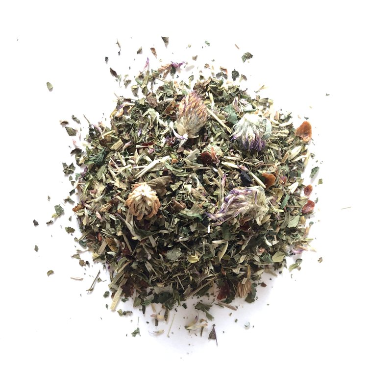 This delightful tea blend is made with mint, alfalfa, oat straw, nettles, clover blooms. Add this tea to your morning smoothing for energy that lasts. Experience the natural revitalization of our Herbal Electrolyte Blend Tea. This thoughtfully crafted tea is a harmonious blend of alfalfa, mints, nettles, oat straw, and red clover blossoms, offering a delightful way to restore hydration and balance. Every package contains a full ounce of this carefully selected combination of herbs, making it easy to brew your way to wellness. Each ingredient in this blend has been chosen for its nourishing properties and refreshing flavor profile. Alfalfa is rich in vitamins and minerals, supporting overall vitality. The soothing notes of mint add a calming freshness, while nettles, known for their detoxifying qualities, bring a touch of earthy robustness. Oat straw contributes to hydration and relaxation, and red clover blossoms lend a mild sweetness and a wealth of nutrients. Perfect for anyone seeking a natural way to rejuvenate, this tea is ideal for daily enjoyment, post-exercise hydration, or moments of mindfulness. Its light, herbal flavor is a refreshing addition to your routine, offering the comfort of tradition and the benefits of modern wellness in every cup. Crafted with care, our Herbal Electrolyte Blend Tea is a reflection of nature’s finest offerings. Whether you’re an avid tea drinker or exploring the world of herbal infusions for the first time, this blend invites you to savor the simplicity and power of plants. Discover your next favorite tea today—replenish, relax, and revive with every sip.