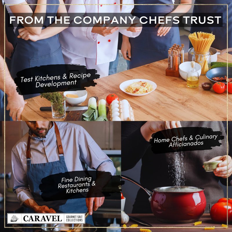 With Caravel Gourmet, we help both gourmet chefs and foodies create irresistible, lip-smacking dishes minus the guilt. Go on a gastronomic adventure with the natural flavors of our pure, handcrafted specialty sea salts and seasonings.Bursting with FlavorsBecome the gourmet chef you’ve always dreamed of with 6 smoked sea salts in your pantry!Smoked Alderwood - Unique, flavorful, and smoky (smoked slowly over alderwood for an extra burst of flavor), it’s excellent on meat, salads, eggs, burgers, and fish.Smoked Garlic - A fantastic blend of smoked sea salt and minced garlic, exploding with delectable flavorsSmoked Bacon Chipotle - Natural sea salt and bacon blended together over alderwood and infused with chipotle pepper flakes Smoked Cherrywood - Great on red meats, poultry, and salmon for a fresh, smoky flavorSmoked Bacon - A flavorful blend of sea salt and bacon that’s naturally smoked over alderwood to enhance the flavor of steak, eggs, beans, and saladsSmoked Garlic and Onion - Excellent for seasoning meats, salads, eggs, burgers, and fishIdeal for Any DietGluten-FreeMsg-FreeNon-GmoDairy-FreeSoy-FreeZero CaloriesZero CarbsZero FatZero SugarNo Anti-Caking AgentsCooking and Mixing Made EasyEvery purchase comes with our latest digital recipe book (delivered via email), so you can recreate over 29 delectable recipes to satisfy the foodie in you. Enjoy a sumptuous variety of mouthwatering tastes and aromas with Caravel Gourmet.Add variety to your table with Caravel Gourmet’s pure, clean natural salts. Don’t miss out on the ultimate palate experience!
