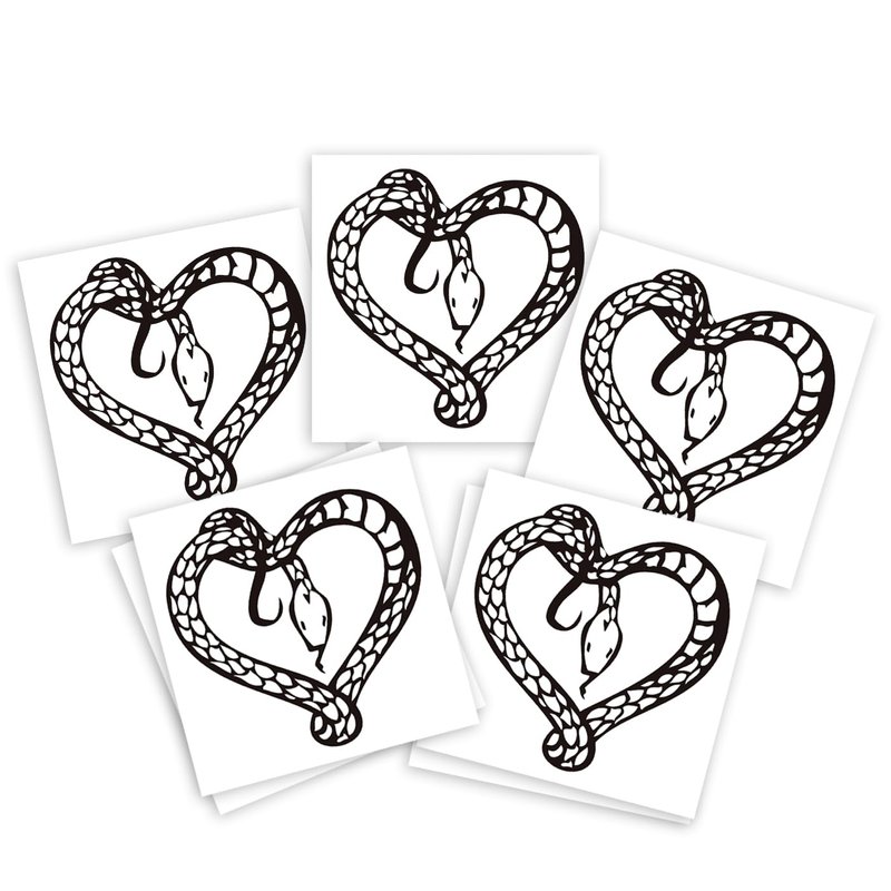- SNAKE HEART TEMPORARY TATTOOS FOR FESTIVALS AND PARTIES::-- This pack includes 7 temporary tattoo stickers featuring a unique snake in the shape of a heart design, perfect for Halloween, cosplay, and party makeup. These tattoos add a touch of mystery to any look and are ideal for both adults and kids.