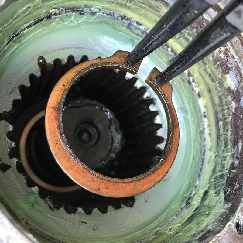 Clamp the circlip with the groove of the circlip pliers mouth,firmly hold and press the handle of the circlip pliers,and then the circlip can be disassembled.