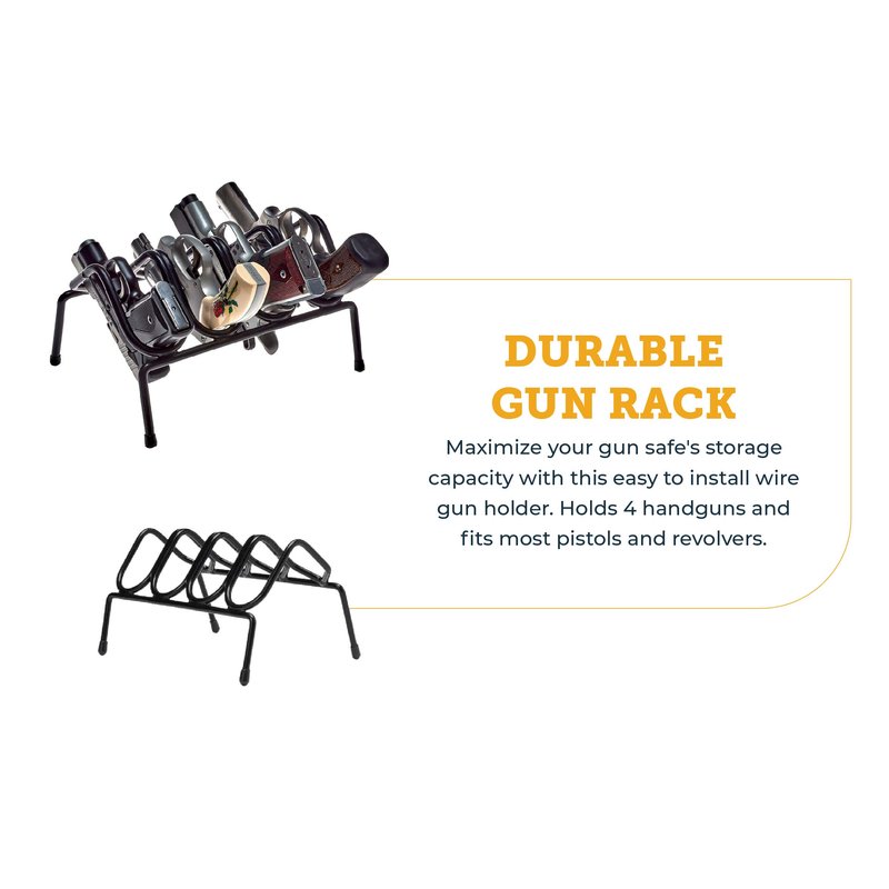 - Wired For Storage – Maximize your gun safe's storage capacity with this easy to install wire gun holder. Holds 4 handguns and fits most pistols and revolvers
