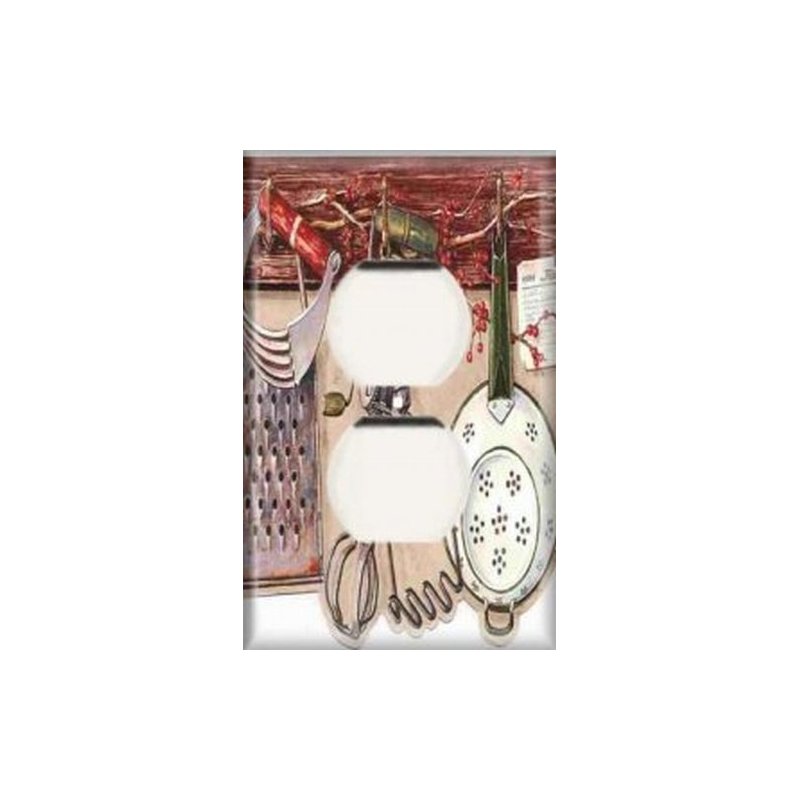SnazzySwitch Kitchen Utensils Decorative Outlet Cover - Single Duplex Receptacle Wall Plate