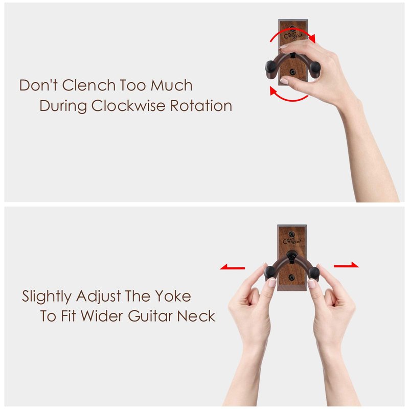 - 🎸Rotatable Design: The yoke of the hardwoods guitar wall mount bracket holder is adjustable, this rotating yoke fits a multitude of headstock designs, especially for accommodate non-symmetrical headstocks. The guitar can easily access the hanger and be held by it. A guitar hanger wall hook holder stand with various compatibility can help you solve all the troubles of general guitar wall keepers and save your unnecessary costs. The best choice for guitar accessories.