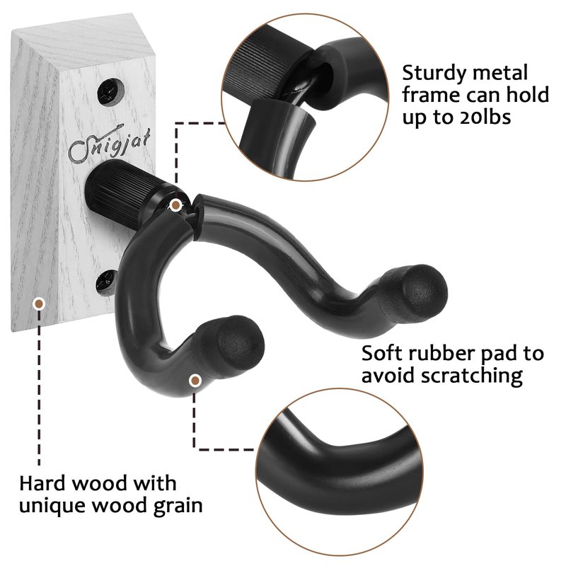 - 🎸High-Quality Hardwood Guitar Hook: It is made of natural solid wood, possessing the unique wood grain with attractive and beautiful appearance. The noble guitar and the wood guitar wall mount blend with and complement each other. Its art deco function adds a beautiful art wall to the home. The guitar mount can be used as your music studio, living room, children's room, office, rehearsal space of the wall decoration. A best choice for amateurs and professionals alike.