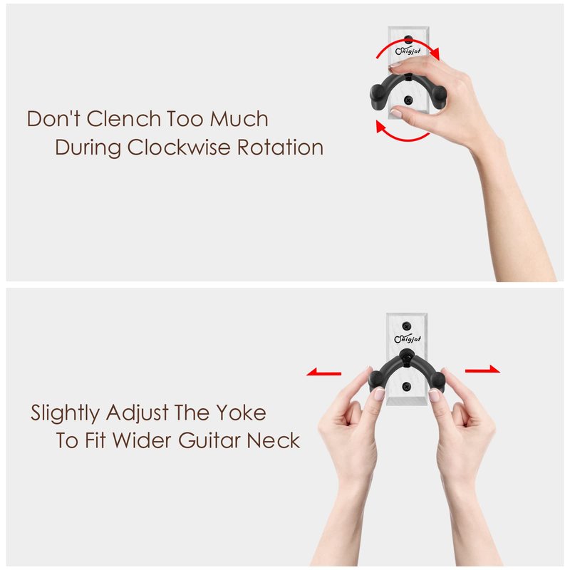 - 🎸Rotatable Design: The guitar yoke can be tilted according to the shape of the guitar headstock. This rotating yoke is suitable for many guitar head types, especially for asymmetric guitar headstocks. The guitar can easily access the hanger and be held by it. Special rotating design can reduce a lot of unnecessary space and cost. The nice choice of guitar accessories. The rotating design is the unique feature of the guitar mount.
