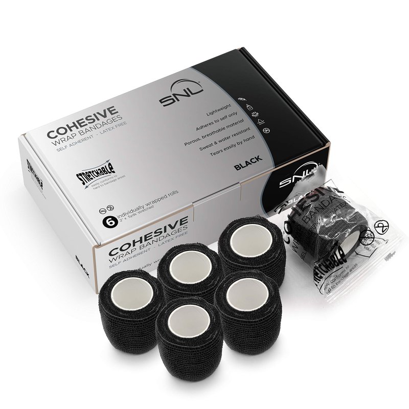 SNL Self Adherent Bandage Medical Wrap is Latex Free, lightweight and soft, making it perfect for any skin type. The material is porous allowing the skin to "breath" keeping the skin from becoming irritaded and itchy. The tape only adheres to self, and will not adhere to hair or skin, making sure that applying and removing the gauze is painless in any application. The elasticity helps the bandage conform in hard to reach areas, and apply the exact amount of pressure needed. The bandage wrap is water and sweat resistant, making it the perfect solution for all your sports and athletic needs. Easily tears by hand, so no need for any tools or scissors when applying.