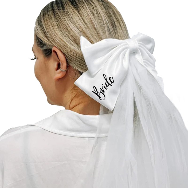 Snogisa Bridal Veil,Bachelorette Veil Pearl Bride Hair Clip,Bride To Be Gift, Wedding,Bridal Shower Gift Supplies (Bow with veil)
