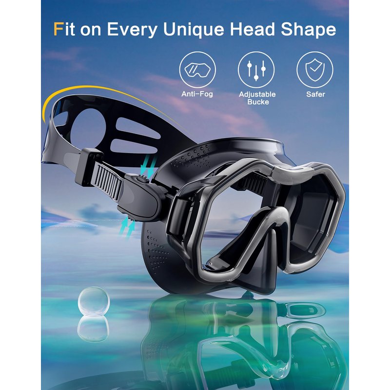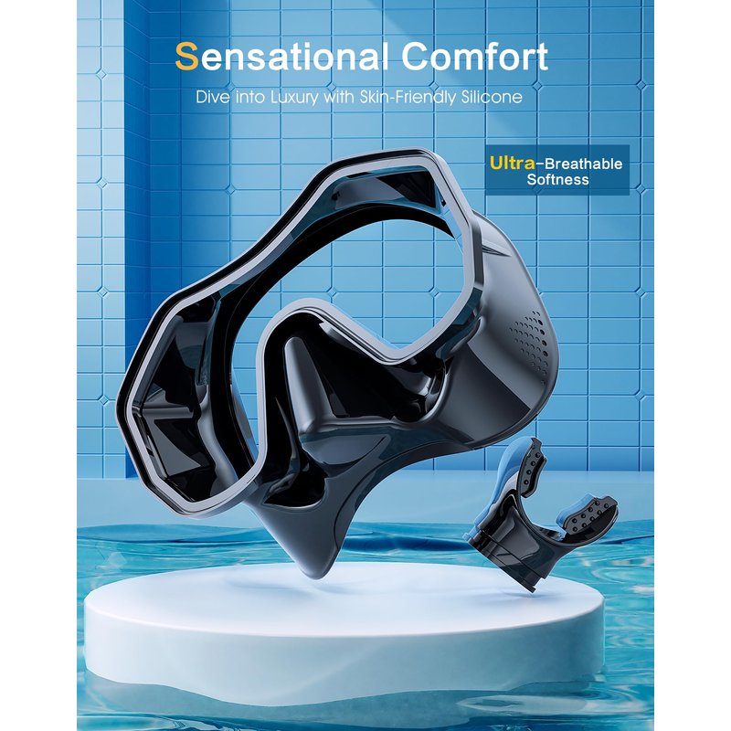 - 【Anti-Fog Lenses Provide Clear Vision】The scuba mask and snorkel mirrors are equipped with anti-fog film to avoid fogging inside the lens when the nose exhales. Now you can enjoy all the underwater scenery clearly.