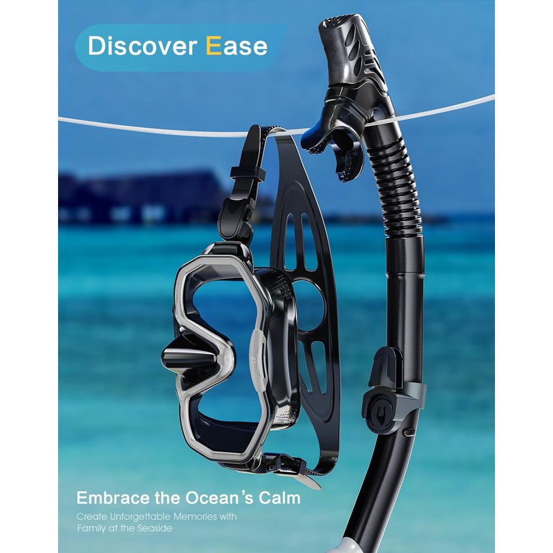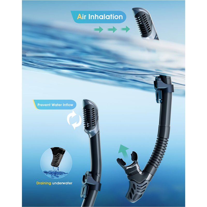 - 【Dry Top Anti-Splash Design】Snorkel set adult installs an one-way inhalation valve and has a mobile floating ball on the top of it. Once the tube is underwater, the tube entrance will be closed by the floating ball,Whether you are swimming or diving, you can easily handle it.