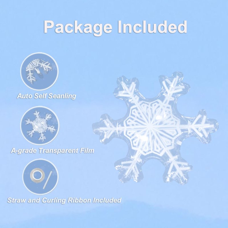 - Snowflake Decorations Set: The package includes 4 snowflake shaped foil balloons, 1 straw and 32ft curing ribbon.