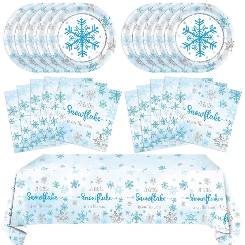 Snowflake Birthday Party Decorations Christmas Snowflake Party Plates Napkins Tablecloth Set Blue and White Snowflake Winter Birthday Party Supplies Decorations Snowflake Baby Girls Birthday Tableware