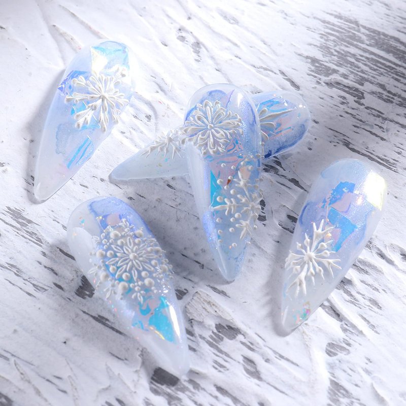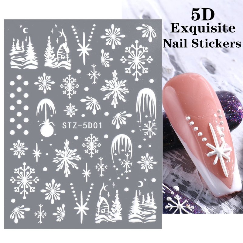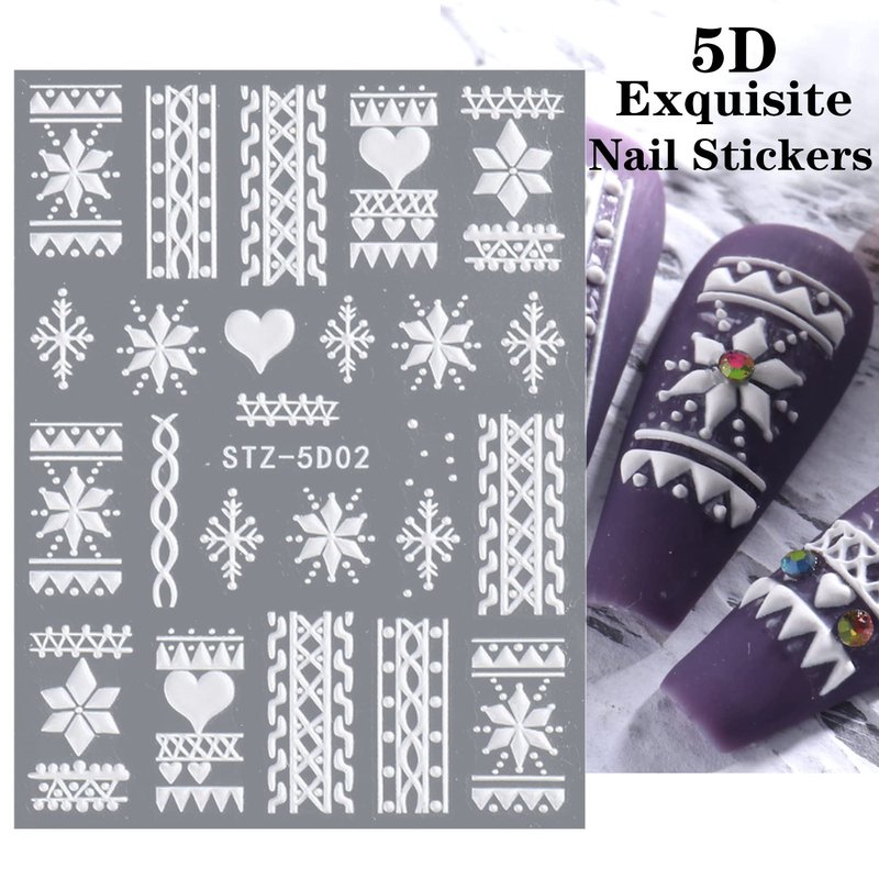 - [Exquisite Relief] Compared with 3D nail stickers, this 5D embossed snowflake nail sticker is softer and has a more obvious three-dimensional effect, exquisite and luxurious nail art for daily and holiday parties decoration.
