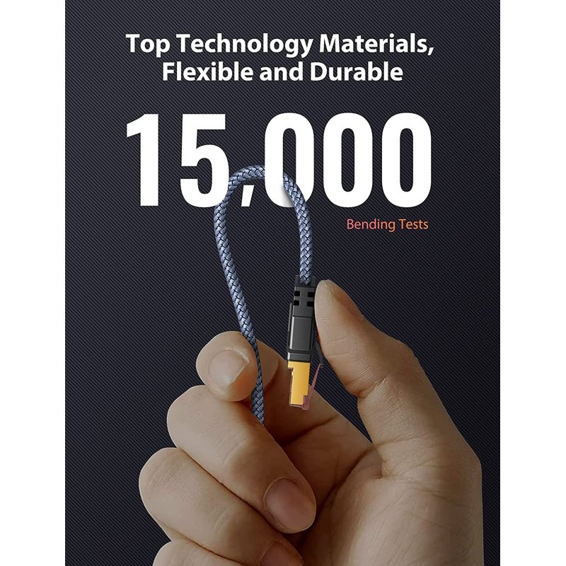 - 【Best quality products and services】 The Ethernet cables 10ft is made of optimized nylon material. After a special double-layer weaving process, the lan cable is more durable and wear-resistant, and the internet cable has undergone more than 15,000 bending tests. If you encounter any problems in the process of use by cat8 ethernet cable, you can contact us at any time. Nylon Cat 8 cable ethernet cables can be used both indoors and outdoors, but outdoors may affect the life of the cable.