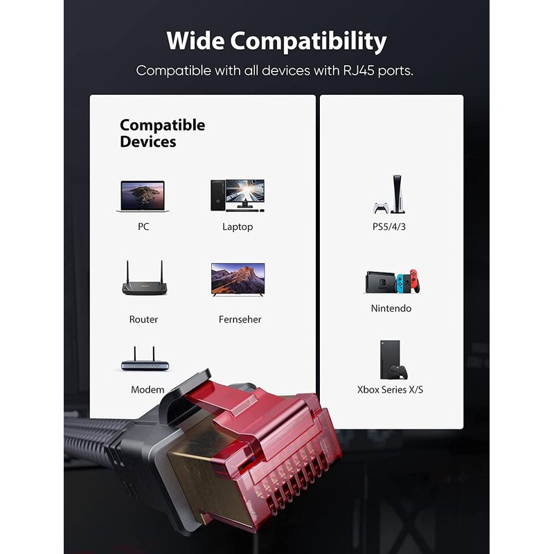 - 【Wide Compatibility】 Cat8 ethernet cable 10 ft provides universal connectivity for networking switch, IP Cam, routers, Nintendo switch, ADSL, Modem,PS4,X-box,Patch panel,Servers Networking Printers, Netgear, TP-link, NAS, VoIP phones, Coupler,Keystone jack, Smart TV, Imac and other device with RJ45 connectors.The ethernet cables 10ft can also be fully backward compatible with Cat7/Cat6e/Cat6/Cat5e/Cat5.This long ethernet cable will improve the reliability and accuracy of data transmission.