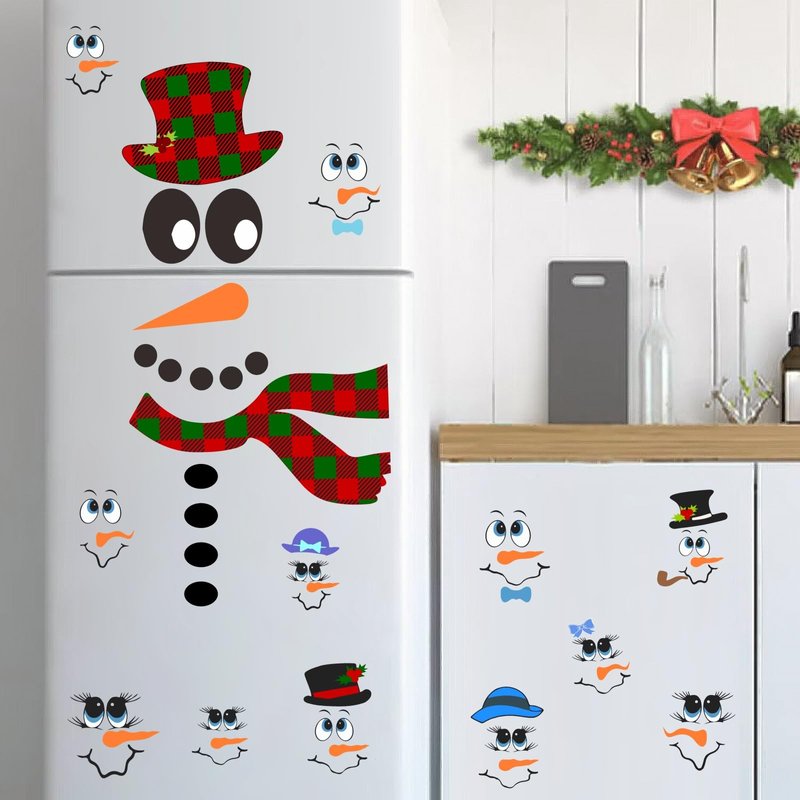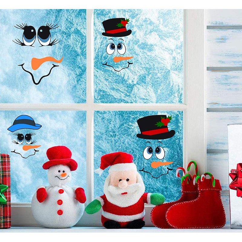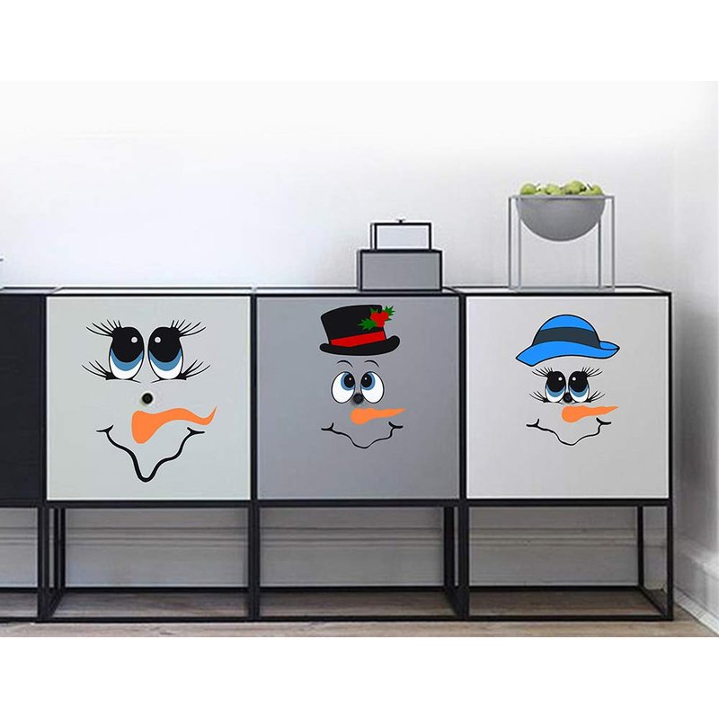Snowman Face Stickers Snowman Decals Christmas Wall Decals Snowman Faces Decals Refrigerator Wall Stickers Window Cling Decal Lovely Snowman Face Art Wall Decor Christmas Decorations