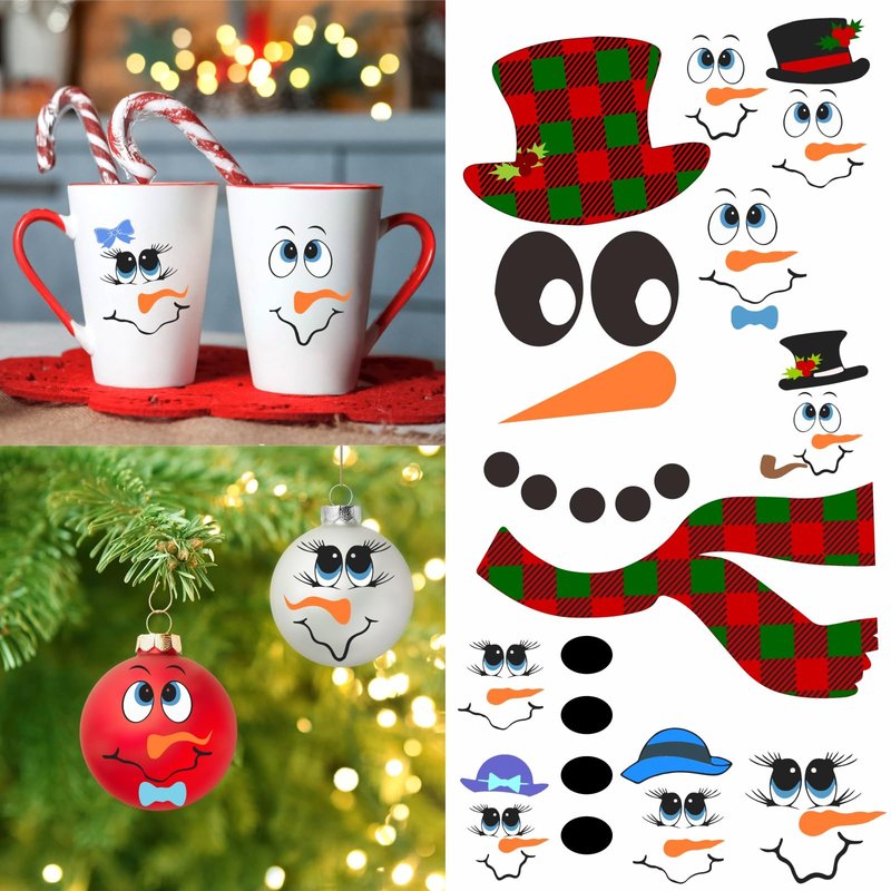 - Christmas snowman face decals Set of 24pcs(2.0"x2.5" to 3.9"x3.9"),