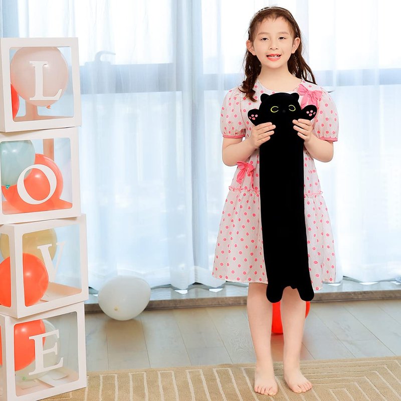 SNOWOLF Black Cat Plush Toy Soft Long Cat Pillow Plushies Doll Stuffed Animal Plush Body Pillow Black Sesame Meowchi Sofa Throw Pillow Decoration Gift for Kids Girl, 70cm/27.5inch