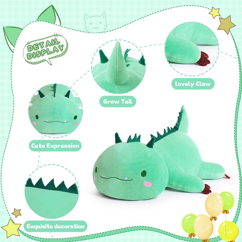 - Multipurpose Dinosaur Plush Pillow: With lovely and lifelike appearance, this stuffed dinosaur plush pillow can be used as a bedtime toy, nap pillow. You can hug and squeeze it to release pressure. It can be a decorative pillow to create a warm room