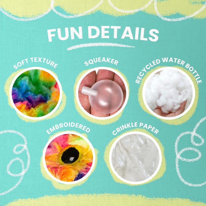 • Soft Tie-Dye Plush: Made from super-soft, colorful tie-dye fabric, perfect for cuddling and playtime fun.