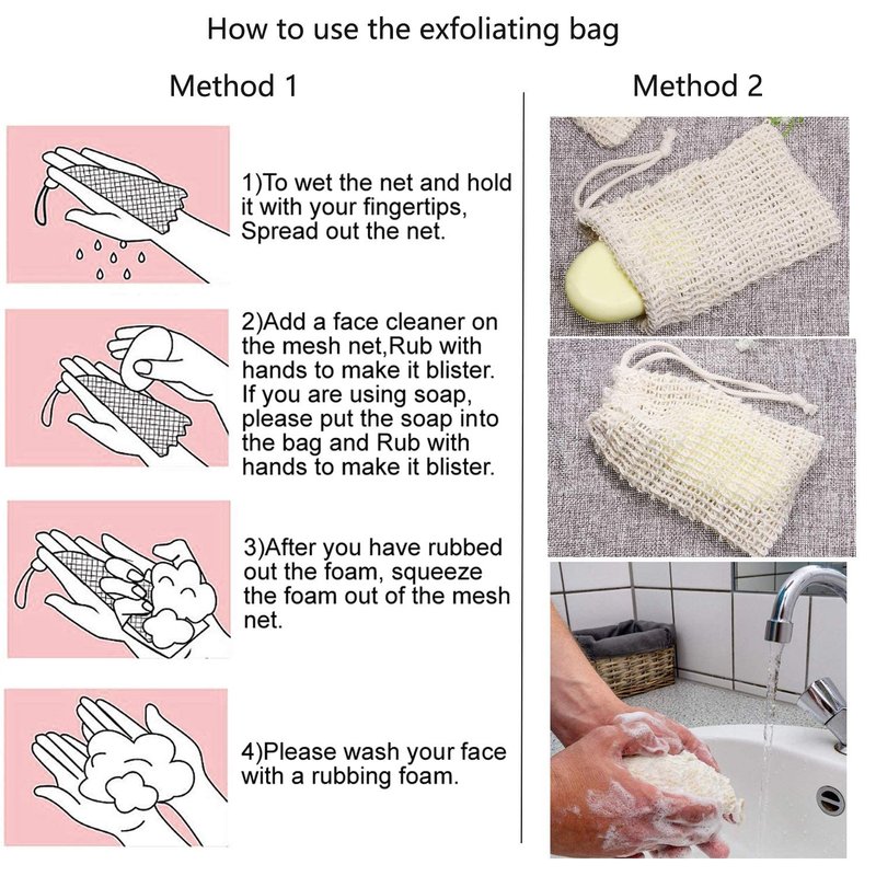 - Instructions: put a bar of handmade natural soap inside the soap loofah pouch and pull tight the drawstring, which can be hung on the hook after use to prolong the life of your homemade soap and without making a mess in the bathroom