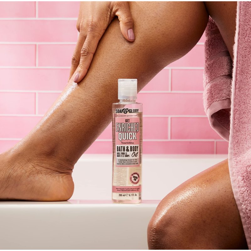 Soap & Glory Original Pink Get Enriched Quick Nourishing Bath & Body Oil - Skin Moisturizer with Argan Oil, Vitamin E, & Almond Oil - Rose & Bergamot Scented Body Oil for Dry Skin (200 ml)