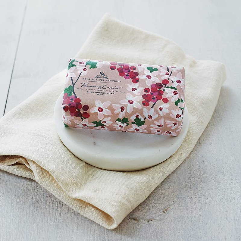 - FRAGRANCE: Soap & Paper Factory’s Flowering Currant fragrance offers fruity and tart notes of Currant and Cassis, blended with deep, sultry and Floral Turkish Rose to create a beautiful, exotic blend.
