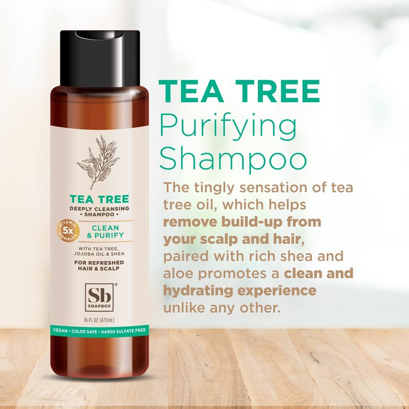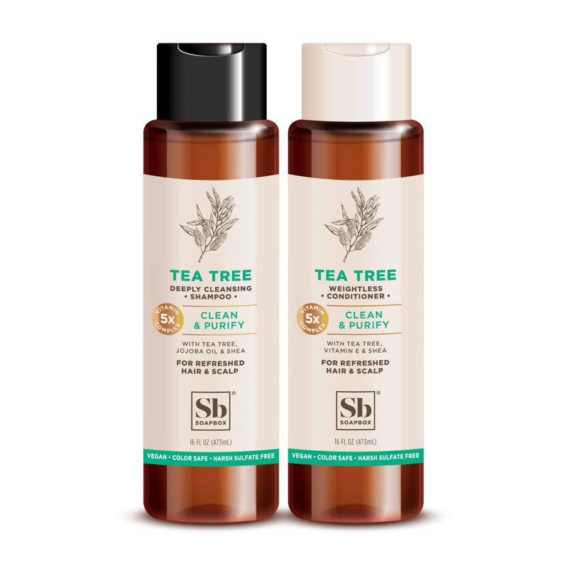 Soapbox Shampoo and Conditioner Set with Tea Tree Oil, Jojoba Oil, Aloe and Shea Butter to Clean and Purify for All Hair Types, 16 Ounces Each (Pack of 2)