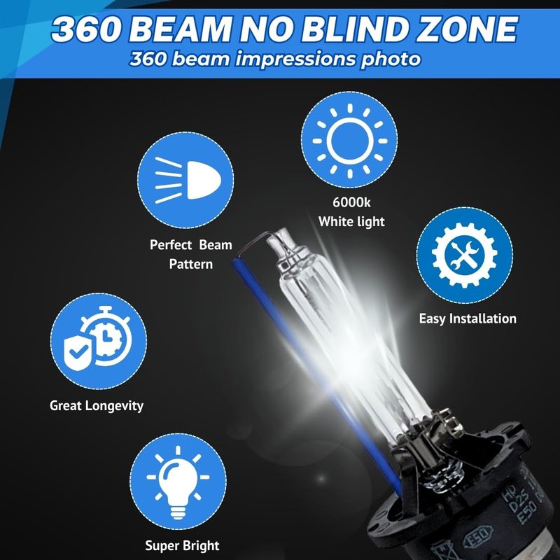 - Super bright D2S HID bulbs which can be direct replacement for Original OEM Factory XENON Headlight Lamp.