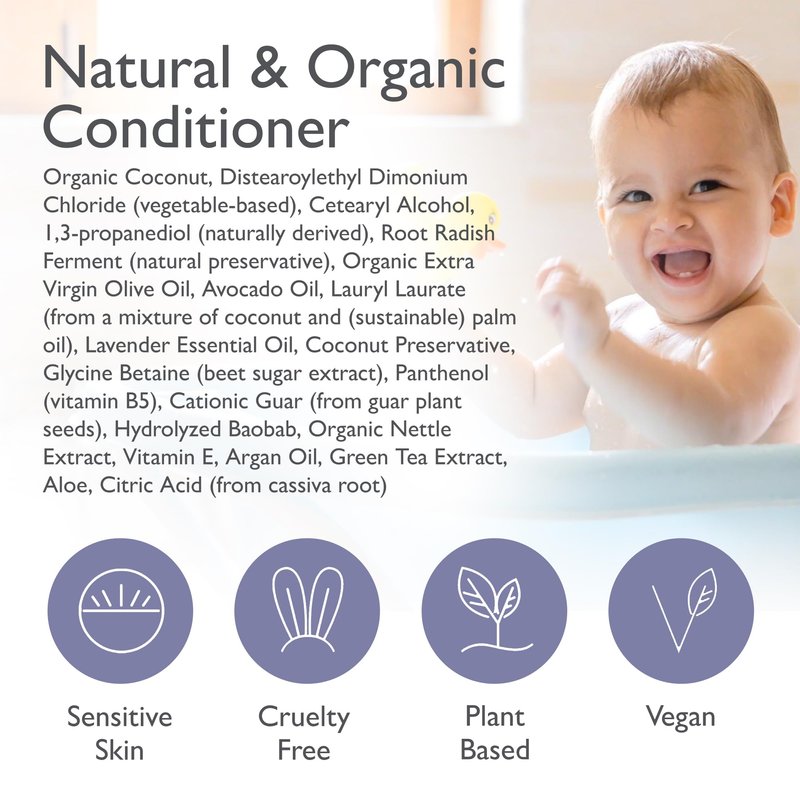 - PURE BOTANICAL BLEND: Experience the loving embrace of nature with our 12oz Baby & Kids Conditioner. This Orange Vanilla-scented formula is rich in organic coconut and olive oils, ensuring a soft, tangle-free mane. Enriched with Pro-Vitamin B7, this conditioner delivers essential nutrients, promoting strong, healthy hair growth, and is made respecting the Earth with biodegradable ingredients.