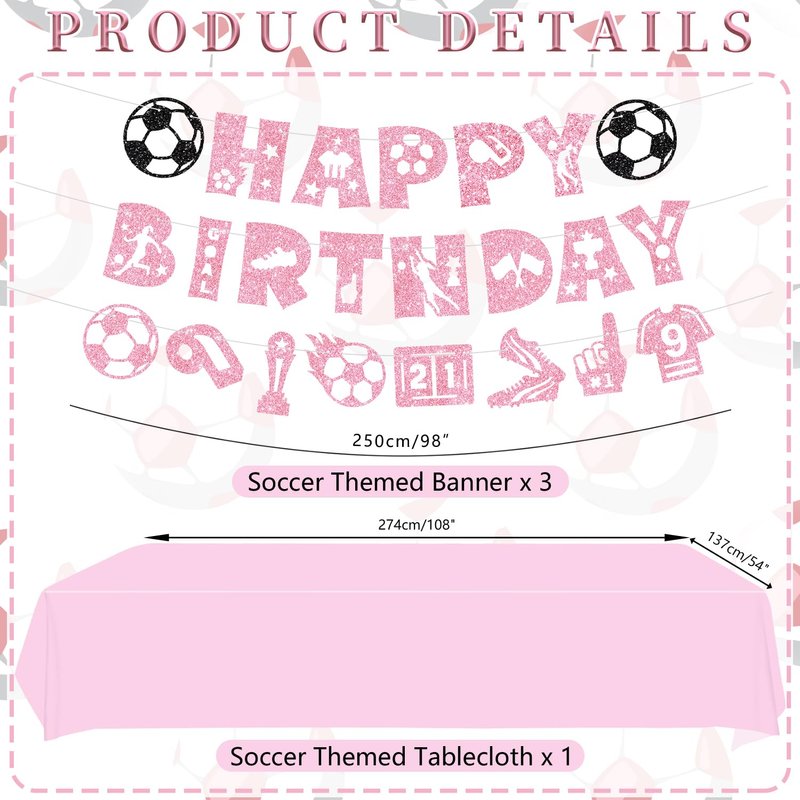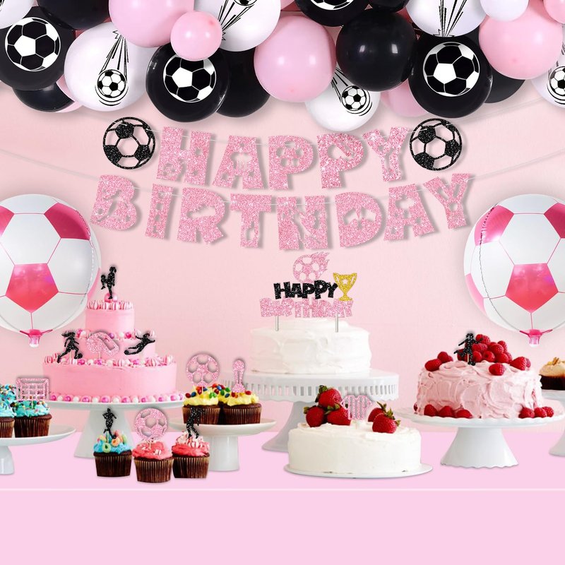 - Design: Our soccer happy birthday decorations for girls are a sports theme and the main color is pink, which is suitable for girls. The football theme pattern is digitally printed on the cardstock, clearly visible, and will not peel nor crack. It is sturdy, shiny, and visually appealing, making your sports theme party more vivid.
