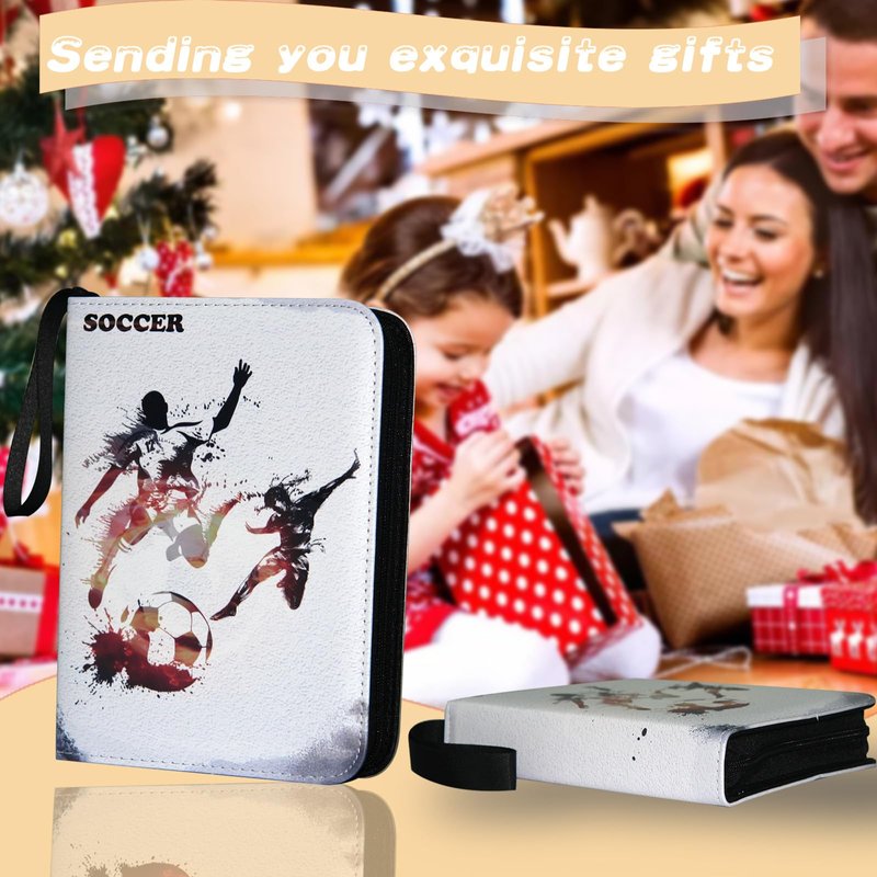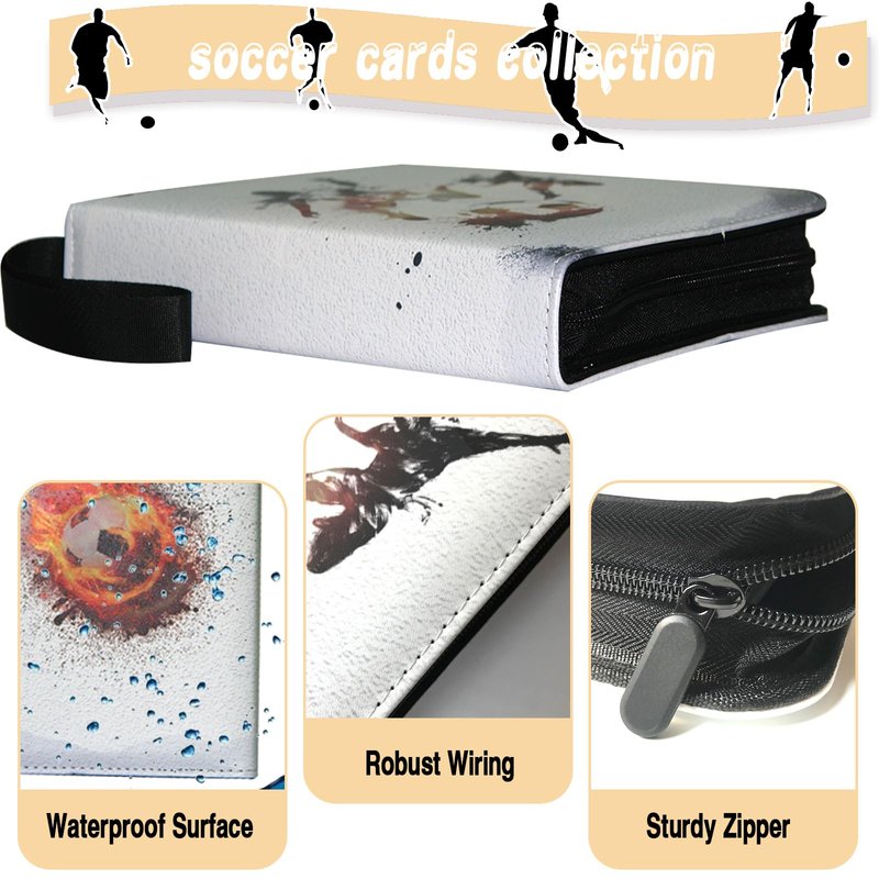 This soccer card binder is made of high quality PU leather, durable and waterproof. Highly transparent card sleeve for easy display and browsing. The zipper design ensures that the cards cannot be lost. All-round protection for your cards. The 4-pocket card binder with 50-page sleeve can hold 400 cards. Store and display your cards in this trading card binder to keep them organized. Compatible for Different Card, Trading card binder fits all standard size cards like football cards, baseball cards, top aces, game cards, attack cards and more.