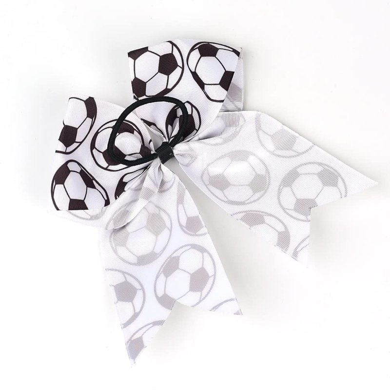 - Soccer Ball Jumbo Cheer Bow For Cheerleading Ponytail Holder Girls School Sport Bow