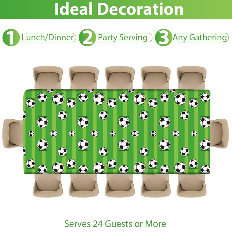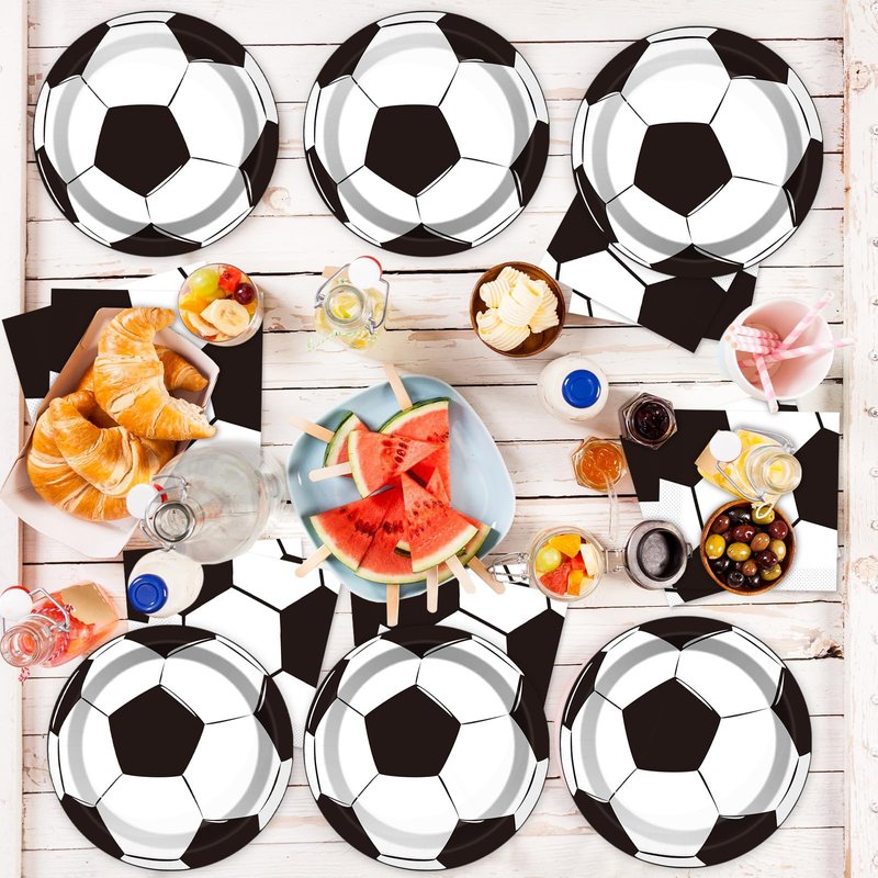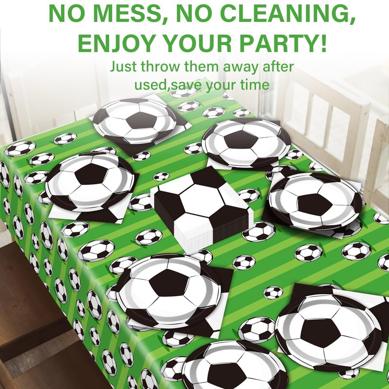 - 【Soccer Party Supplies Serves 24】 You will receive 24 pieces soccer party paper dessert plates of 7’’, 24 pieces napkins of 6.5’’ and 1 piece disposable tablecloth for each set that can serve 24 guests,which will serve small parties.