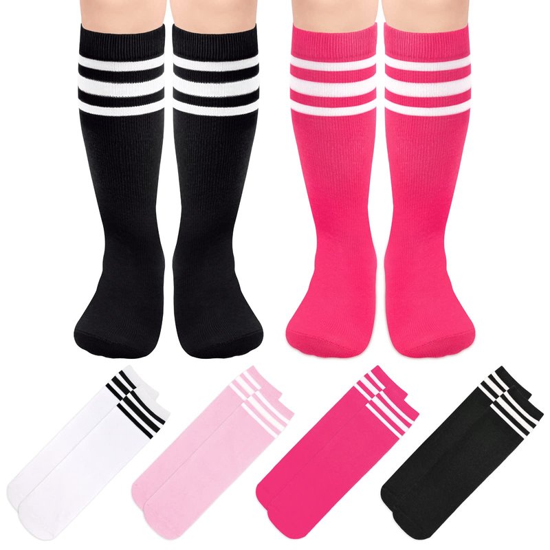 - PERFECT ELASTICITY: Designed with wonderful elasticity, the boys soccer socks can be stretched to provide kids with a comfortable feeling. What's more, the elastic design makes it easy to put on and off for chidren. Besides, the appropriate thickness of the girls soccer socks does not make children feel cold even in cold weather.